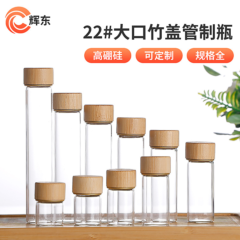 22mmねじ口高ホウ素シリコン製瓶竹蓋西林瓶願い事瓶漂流瓶大口透明分注ガラス瓶