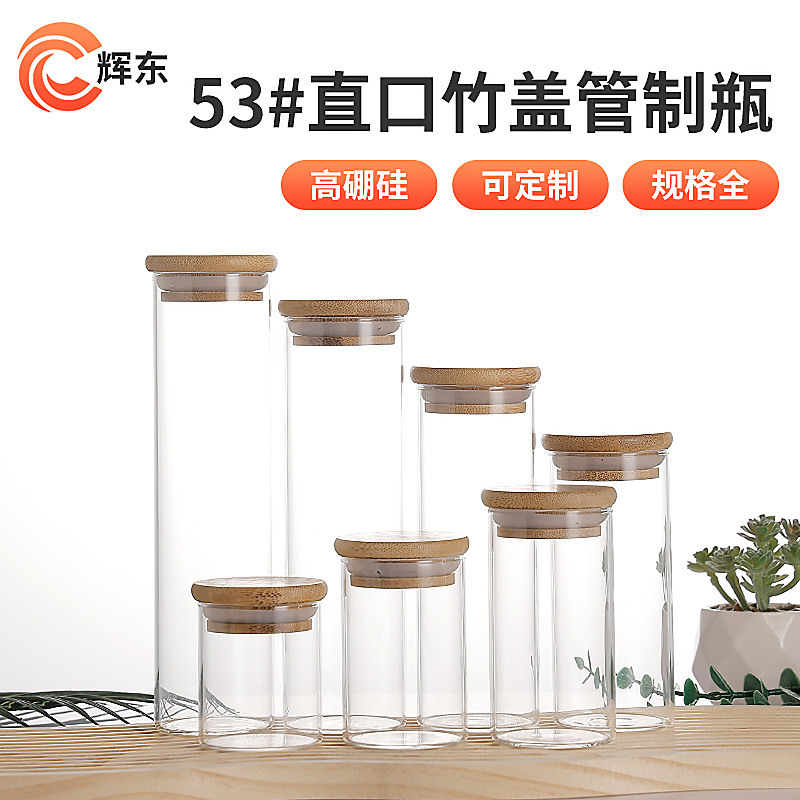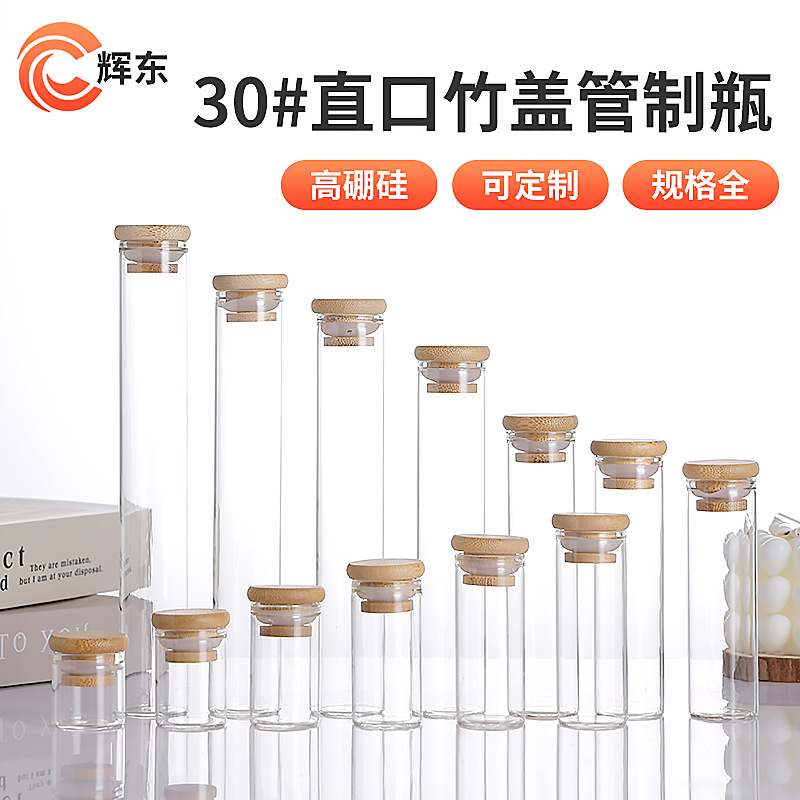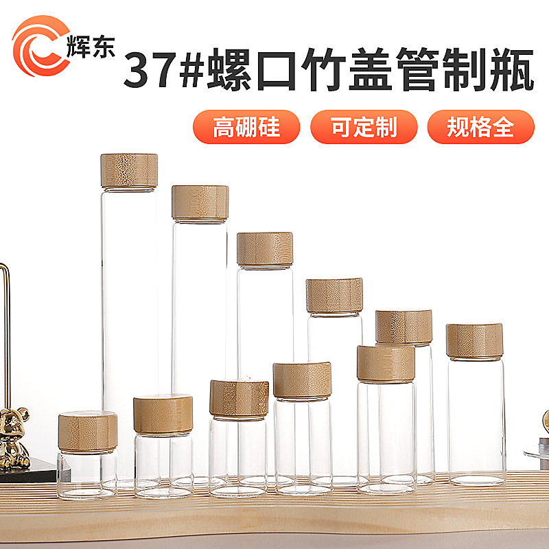 直径37mm高ホウ素シリコン製瓶直口竹蓋試薬瓶願い事漂流瓶虫草粉末包装瓶