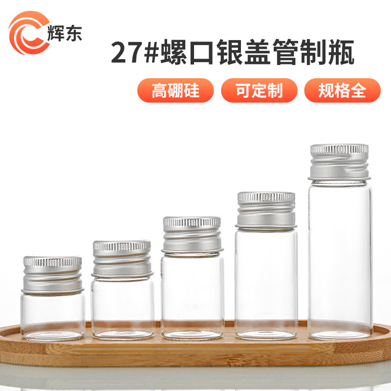 直径27mmねじ口銀蓋高ホウ素シリコン製瓶透明ガラス願い事瓶漂流瓶試薬瓶卸売り