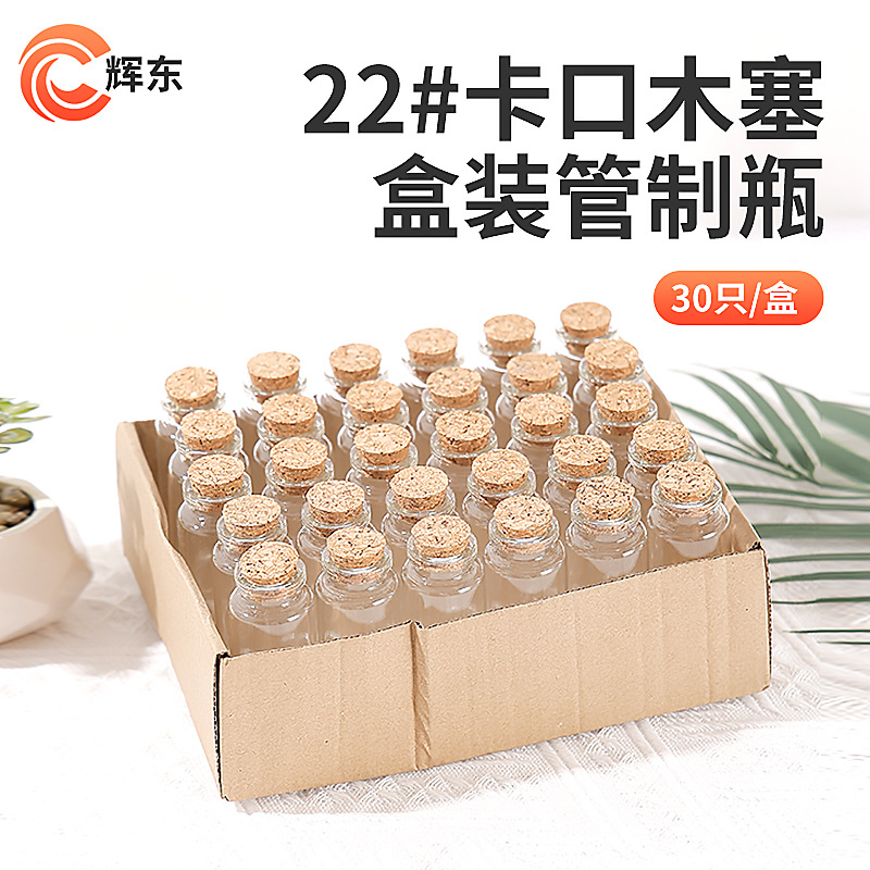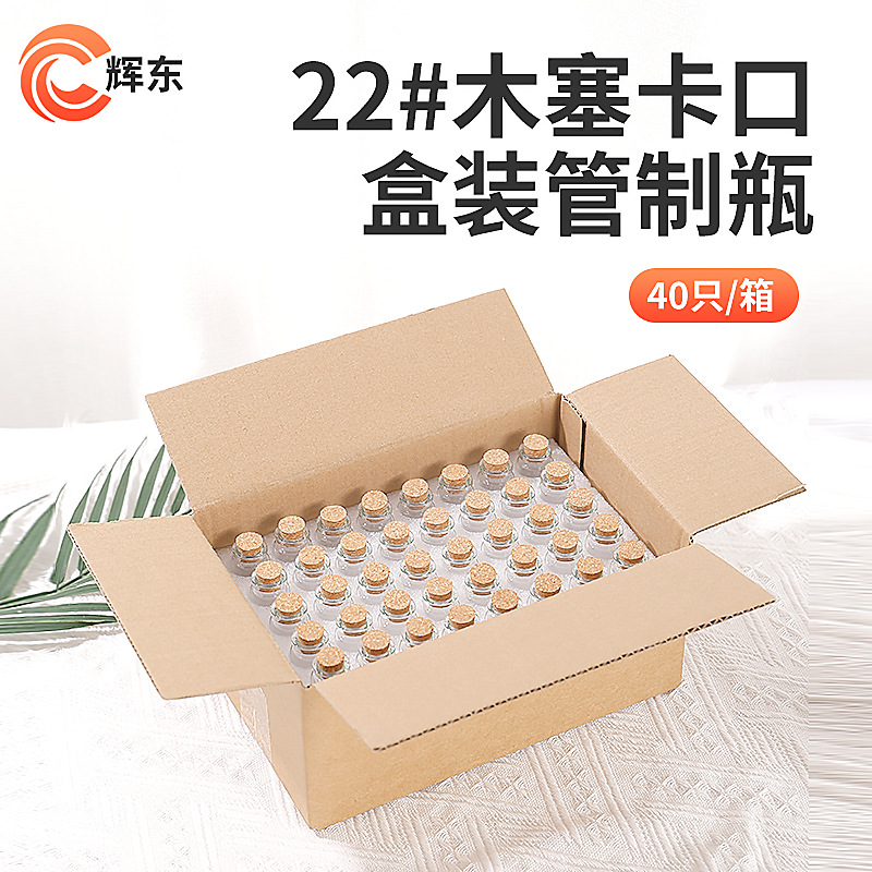 高ホウ素シリコン製瓶40本の箱に入った試薬瓶22*80mmの木栓口許瓶パール綿包装瓶