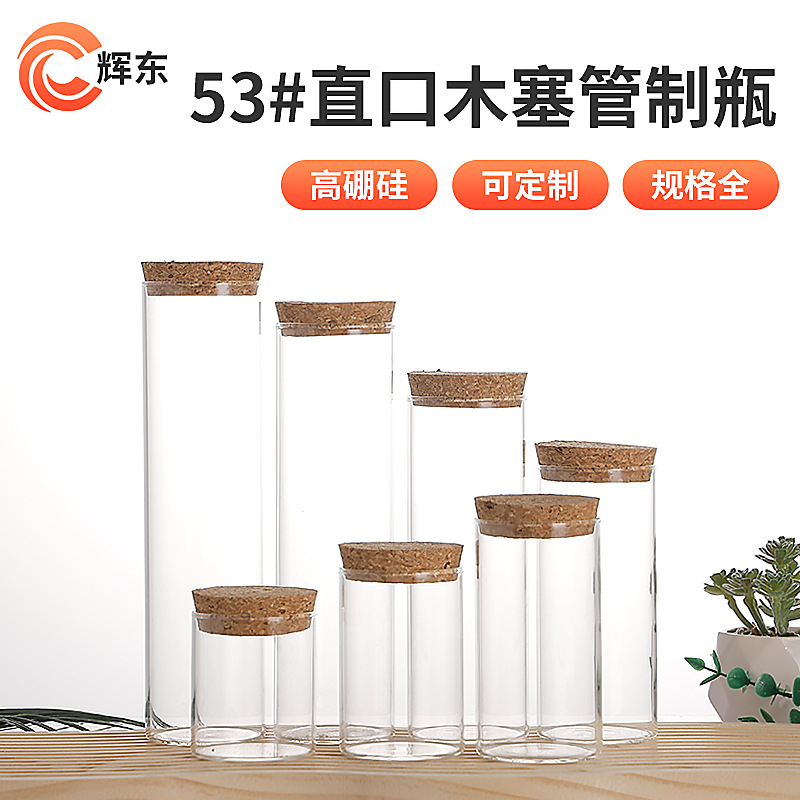 メーカー高ホウ素シリコン瓶木栓貯蔵缶瓶草花瓶薬瓶直径53mm直口透明願い事製瓶
