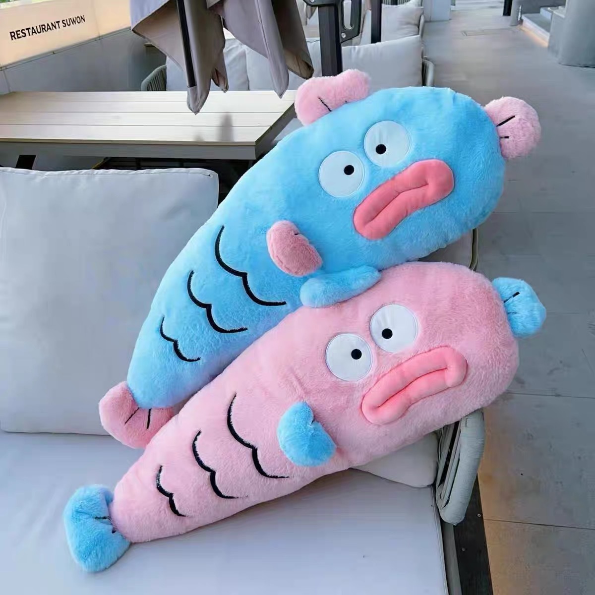 ネットの赤いドーパミンの小さい醜い魚の長い条は枕の人形のソファーを抱いて枕の女子学生の贈り物の人形に寄りかかって外国貿易の卸売りに両替します。