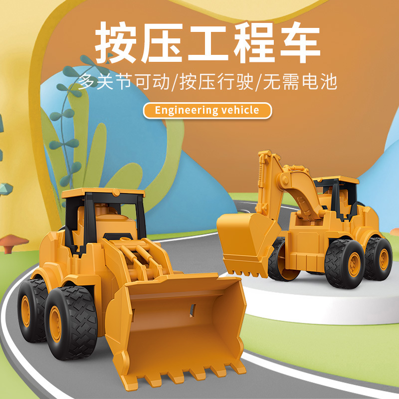 子供は工事車の益智のおもちゃの男の子の掘削機の慣性の小さい自動車を押して土を掘る車の模型の露店の卸売りを押します。