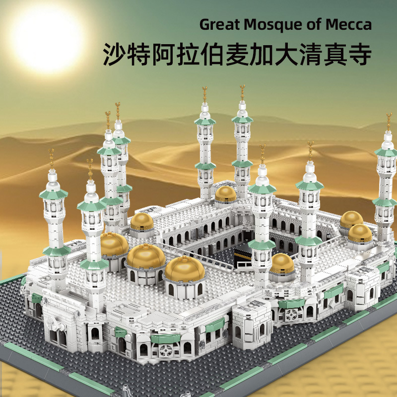 万格6220サウジアラビア大モスク世界観光スポット建築模型は積み木の子供のおもちゃを組み合わせています。