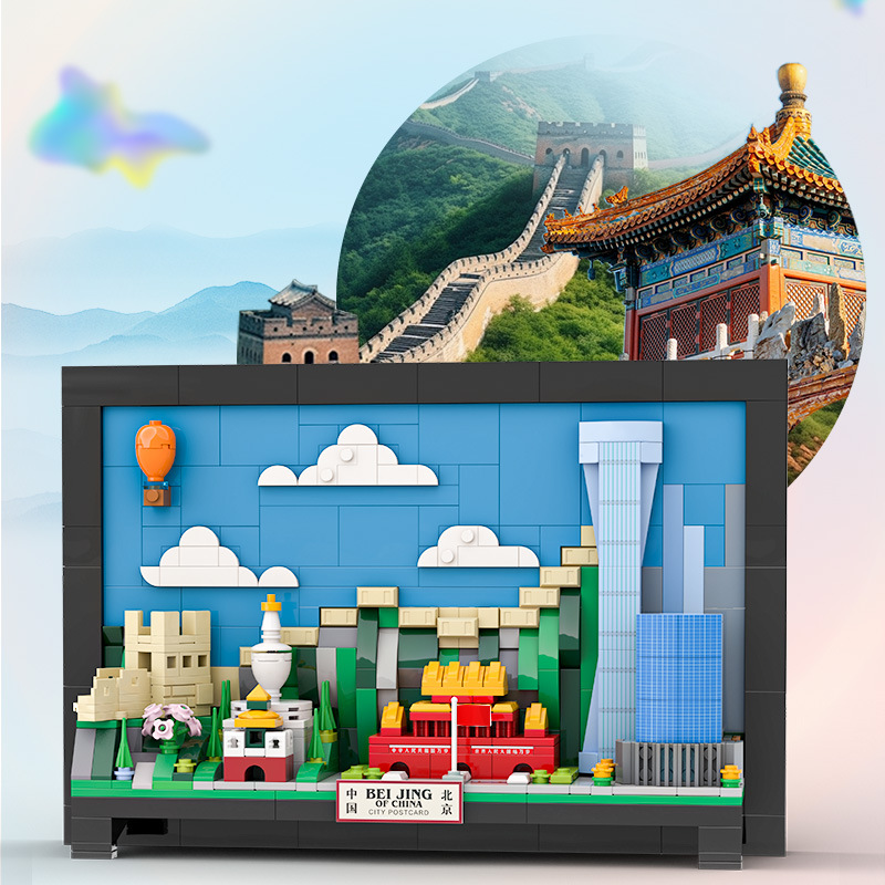 万格4920都市のはがき北京上海の小粒を積み木の壁に合わせて掛けて創意的な写真を飾っています。