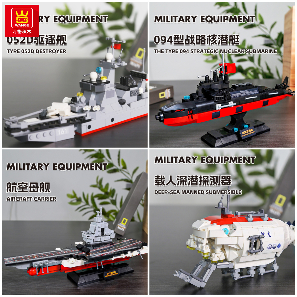 万格3518-21軍事空母ミサイル駆逐艦潜水艦の小粒を積み木玩具模型に組み立てる。