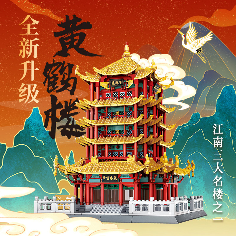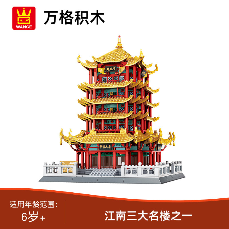 万格6214小粒積み木世界建築中国湖南黄鶴楼模型男少女玩具