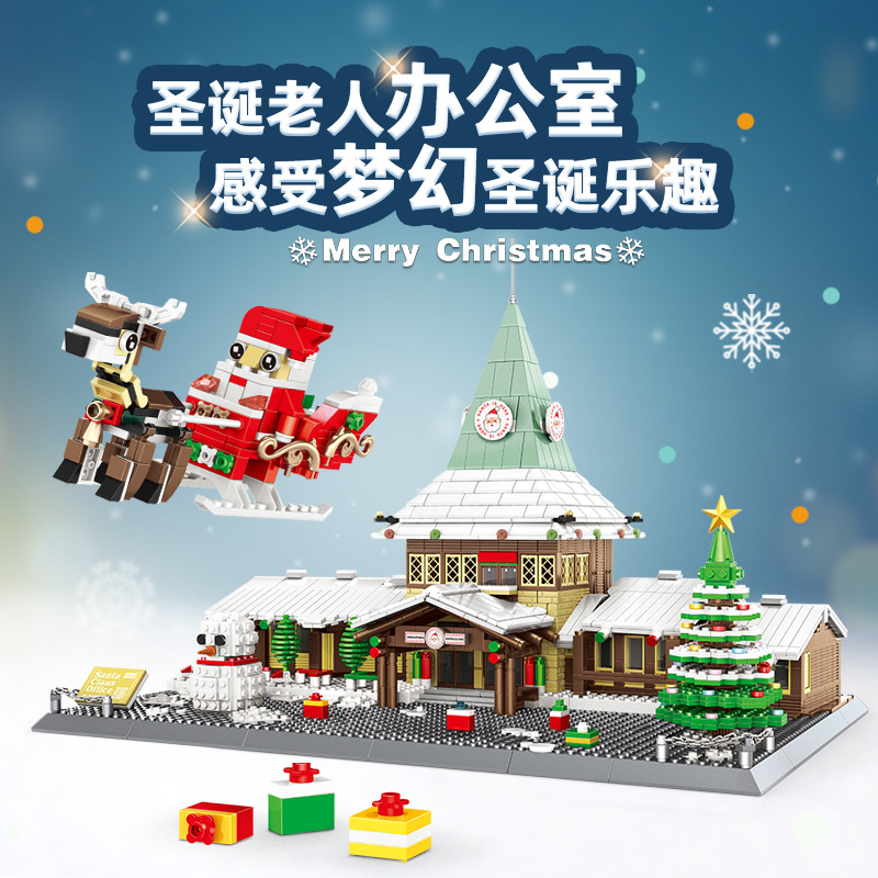 万格の積み木のサンタクロースの事務室の世界の建築の模型の小さい粒の高難度は積み木のおもちゃをつづり合わせます。