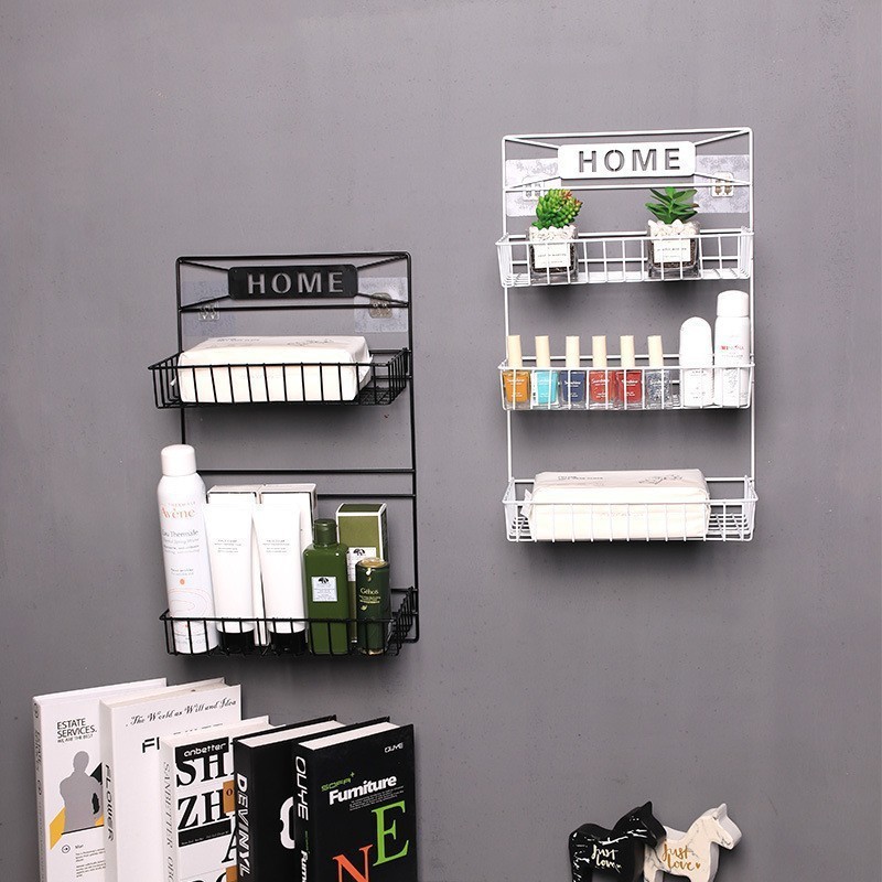 シンプルなスタイルの壁棚パンチフリー壁掛け鉄ハンギングバスケットキッチンバスルーム収納ラック
