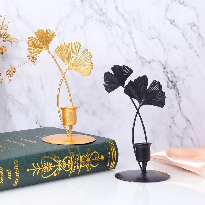 葉北欧鉄芸燭台ins鉄芸イチョウ葉燭台パーティーロマンチックなレストラン装飾シングルカップ燭台