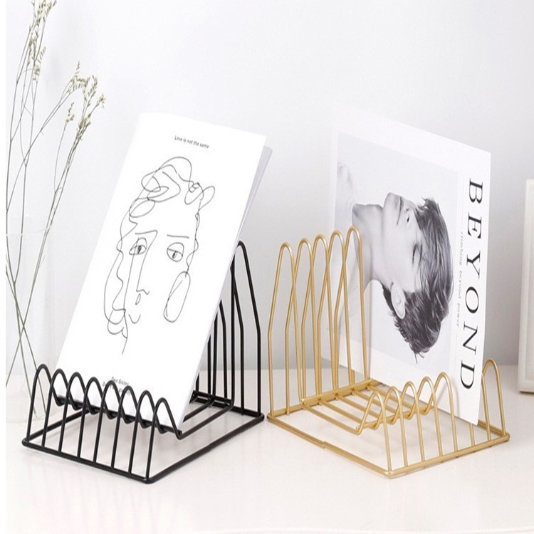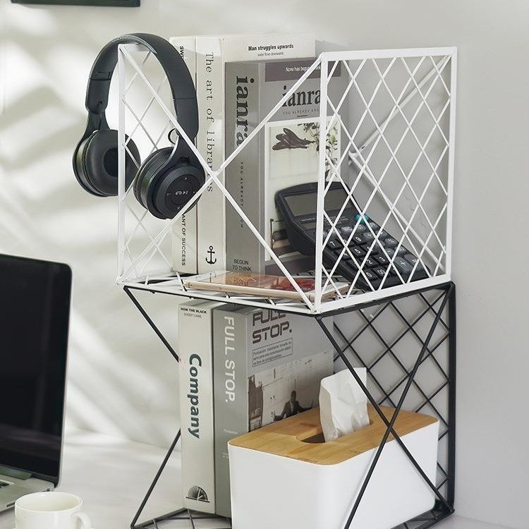 北欧の鉄芸のデスクトップの多層雑誌の収納棚のベッドの棚の棚の物置棚の学生の事務室の収納枠