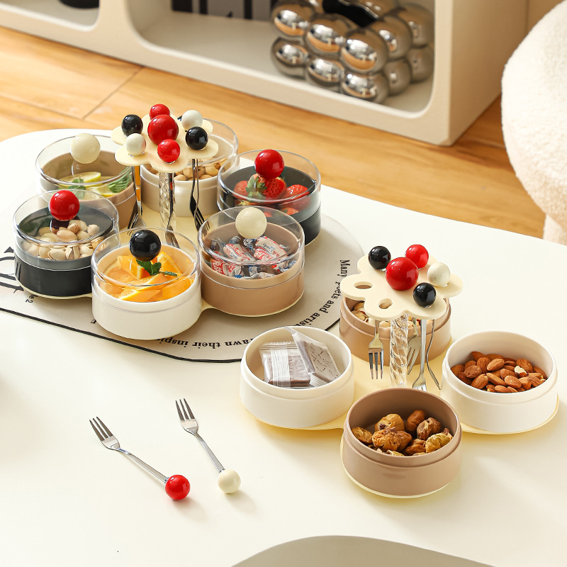 新商品の創意的な回転の果物の皿の客間は家庭用のお茶のいくつかの乾燥の果物の皿の設計感を飾って色のキャンディーの皿の乾燥の果物の箱にぶつかります。