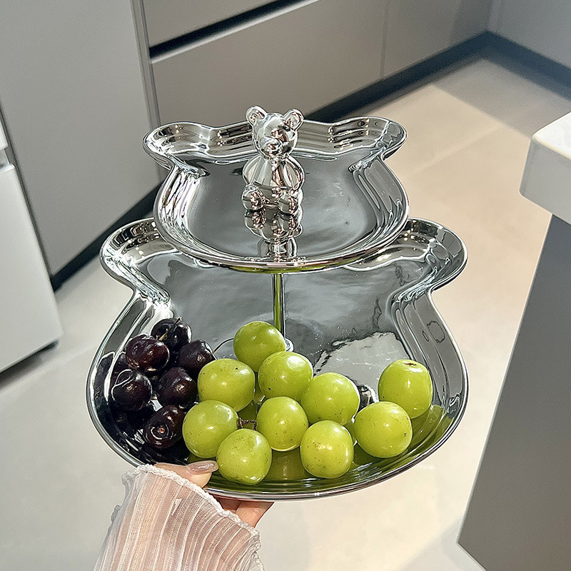 軽豪華陶磁器メッキ熊頭果盤高颜値客間茶何装飾菓子盤分格甜品台展示棚