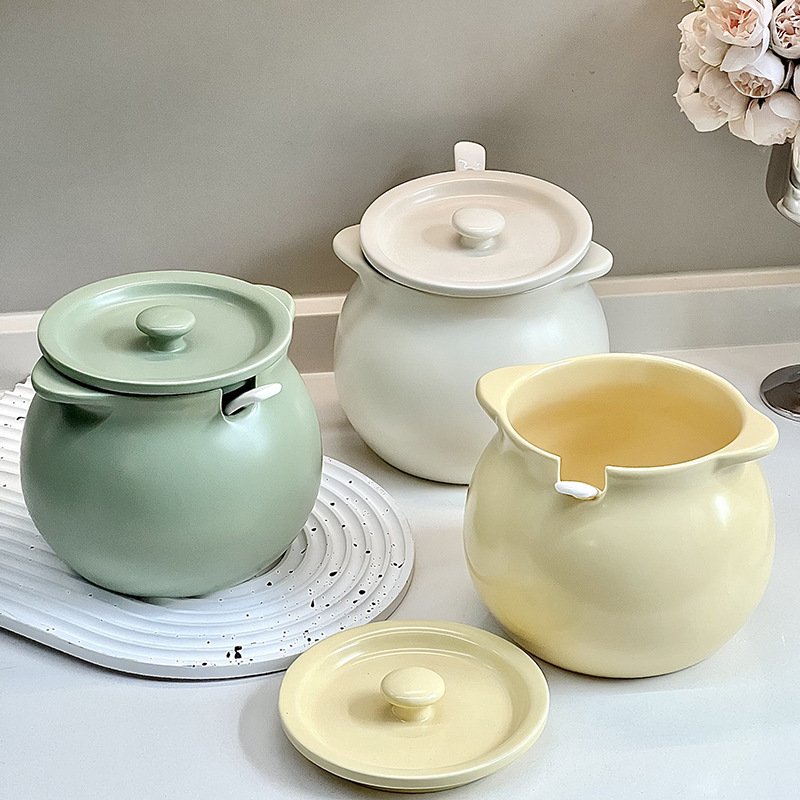 クリーム風双耳豚油タンク耐高温マットデザイン豚油灌漑セラミック蓋付きカプサイシン缶キッチン香料缶