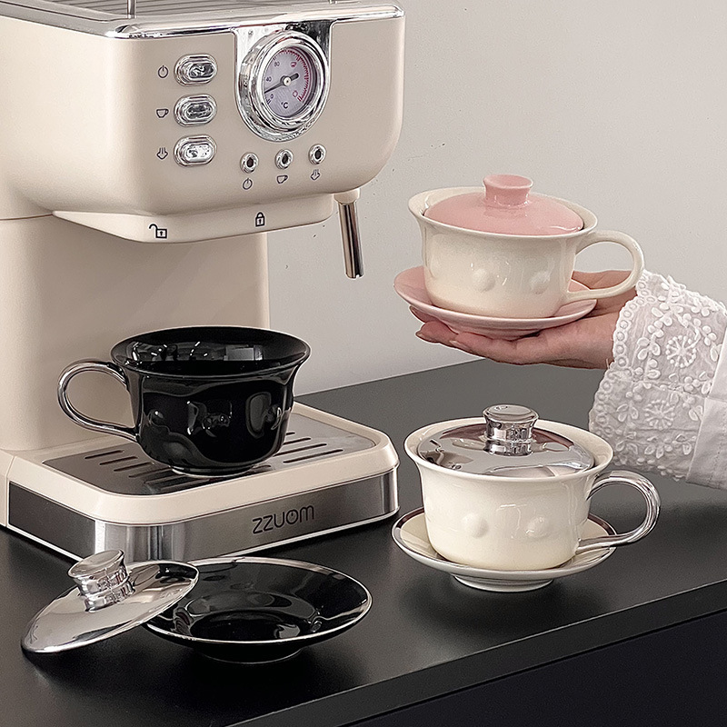 新商品の軽豪華茶楼蓋碗杯皿セット電気メッキ高顔値コーヒーカップホテルレストラン設計感陶磁器カップ