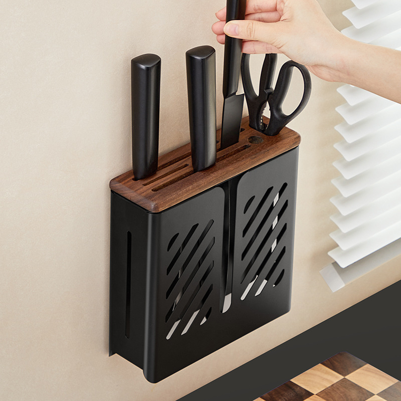 新しいウォールナット包丁ホルダー壁掛けパンチフリー壁多機能箸収納棚新築祝いギフト