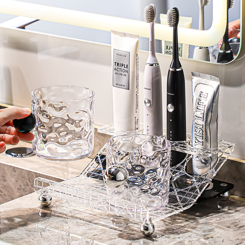 シンプル菱紋アクリル歯ブラシ棚高級感穴あけ歯コップ収納棚浴室好物歯ブラシホルダー