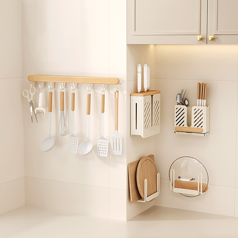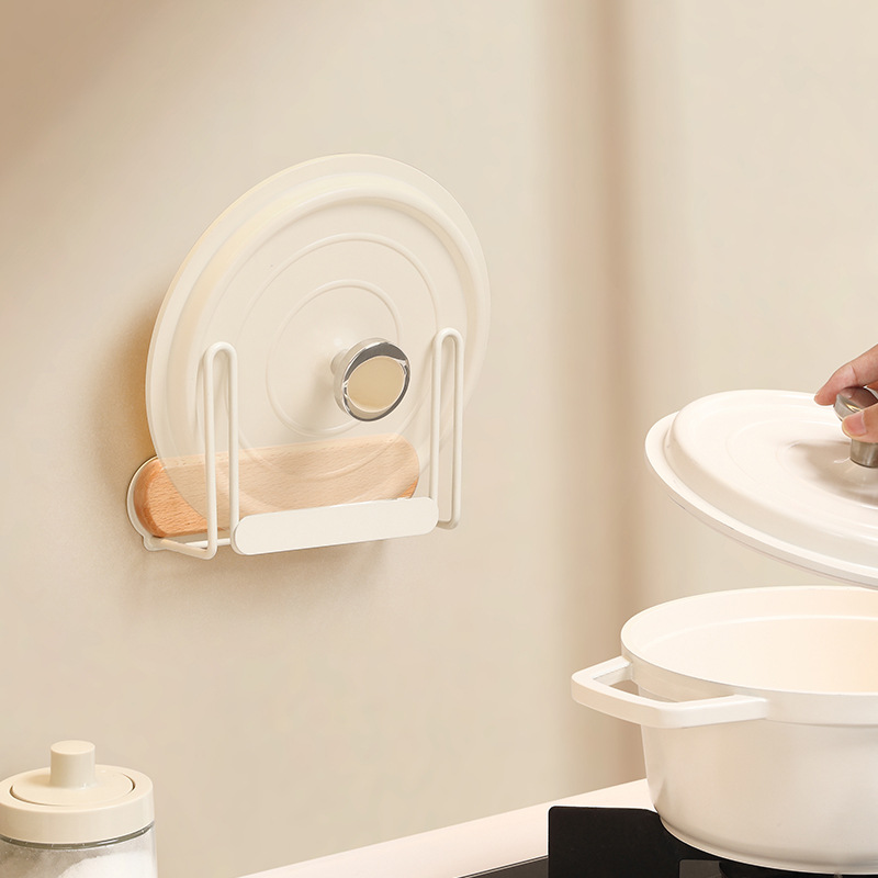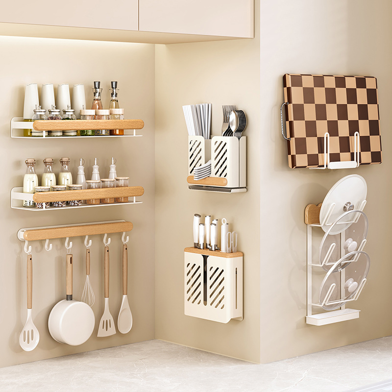 クリームスタイルのキッチンポットカバーラック収納ラック多機能壁パンチフリー壁掛けログ収納ラック卸売