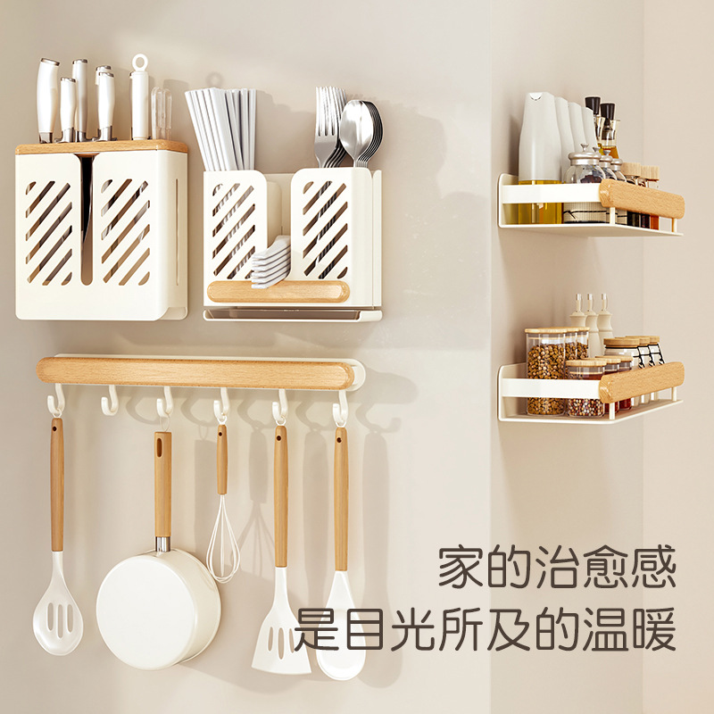 ウォールナットキッチンラックスパイスラックパンチフリー多層ナイフホルダーポットカバー箸スプーン壁掛け収納ラック