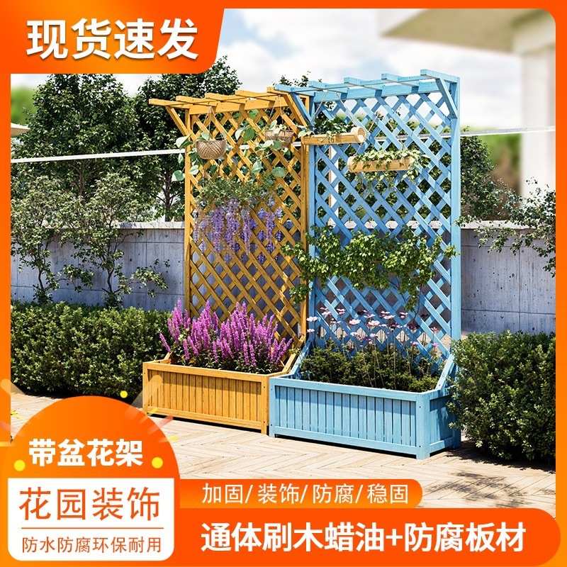 フラワースタンド、つるラック、防錆木製フラワーボックス、屋外グリッドバルコニーガーデンガードレールフラワースタンド、テラスフェンス、植木鉢スタンド