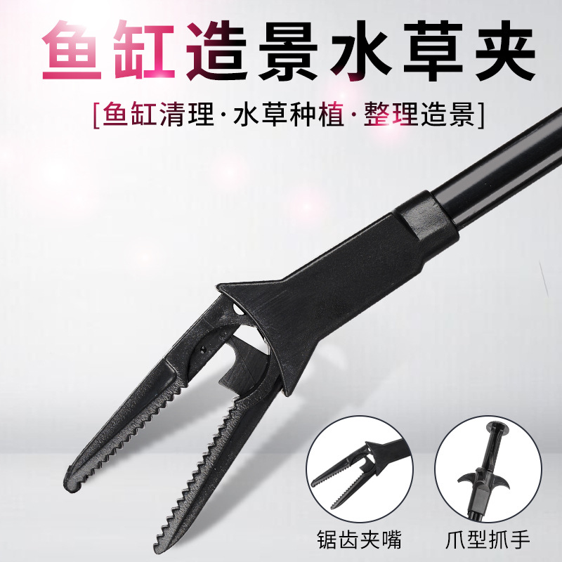 水槽の水草を挟んで、水草を植えて、プラスチックのクリップを挟みます。