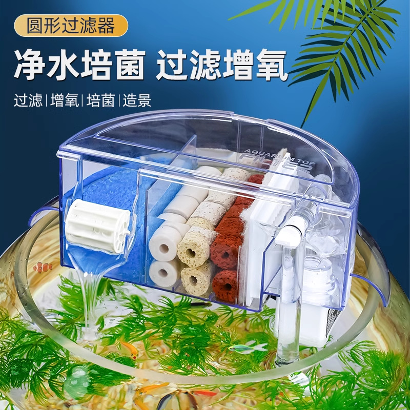円形水槽フィルタ浄水循環三合一増酸素ドリップボックス小型フィルタボックス魚鉢円柱滝