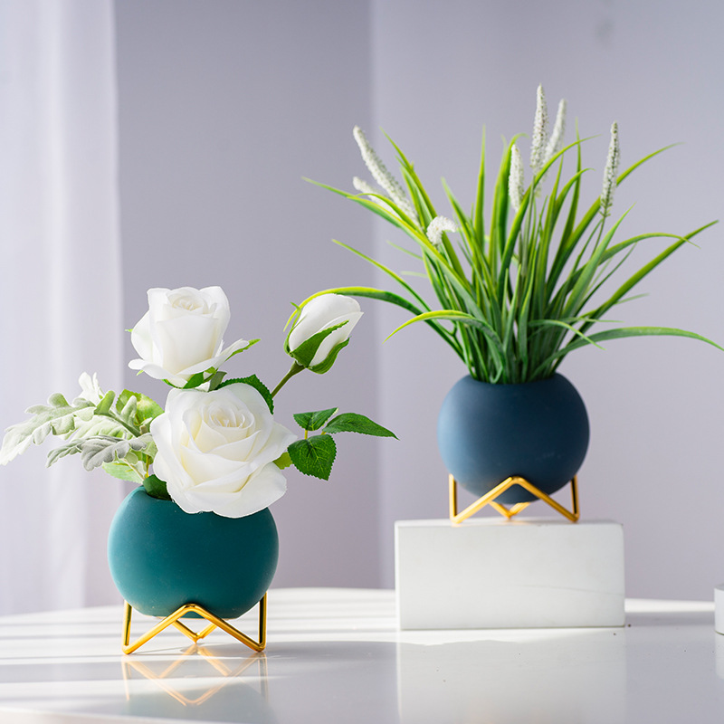 花の置物のデスクトップの軽い贅沢な年を越えて装飾して新年の家庭の造花の寝室の部屋のプラスチックの花の緑の植