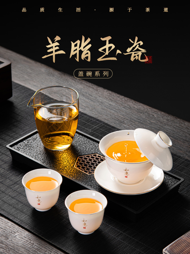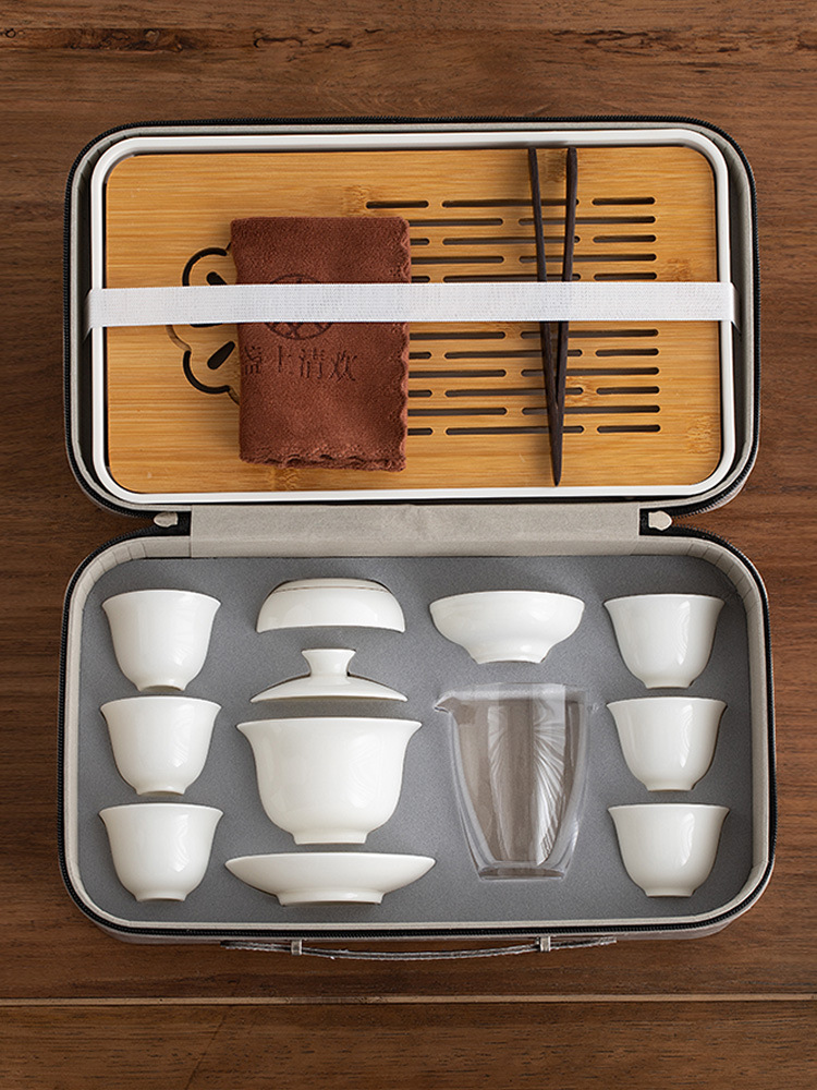 蓋ボウルセット羊脂翡翠旅行カンフー茶セット家庭用セラミックティーカップ完全なセットポータブルライト高級徳化白磁