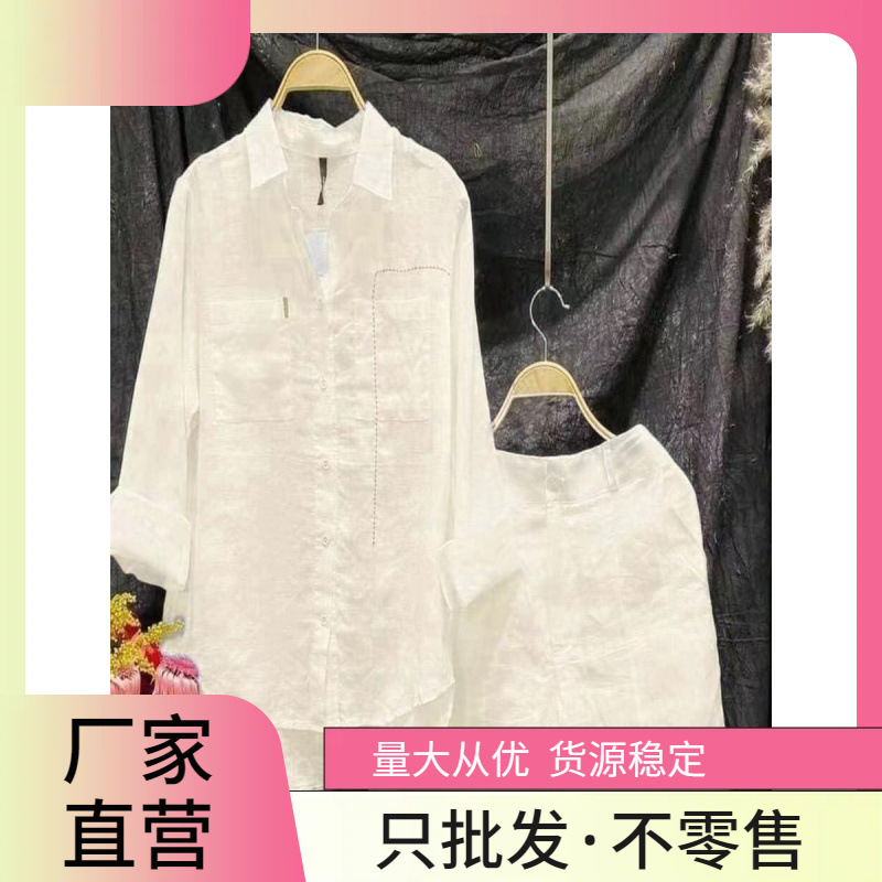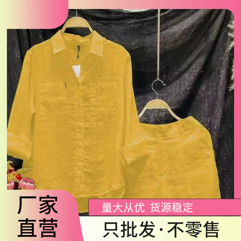 現物2023国境を越えたアマゾン速売欧米の女装ファッションカジュアルでゆるい純色綿麻2点セット