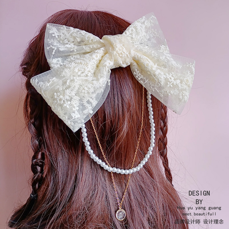 韓国のレースの蝶結びのヘアクリップの刺繍の花の甘い気質のアンドロメダのリボンのスプリングはネットの赤い少女の髪飾りのカードを挟みます。