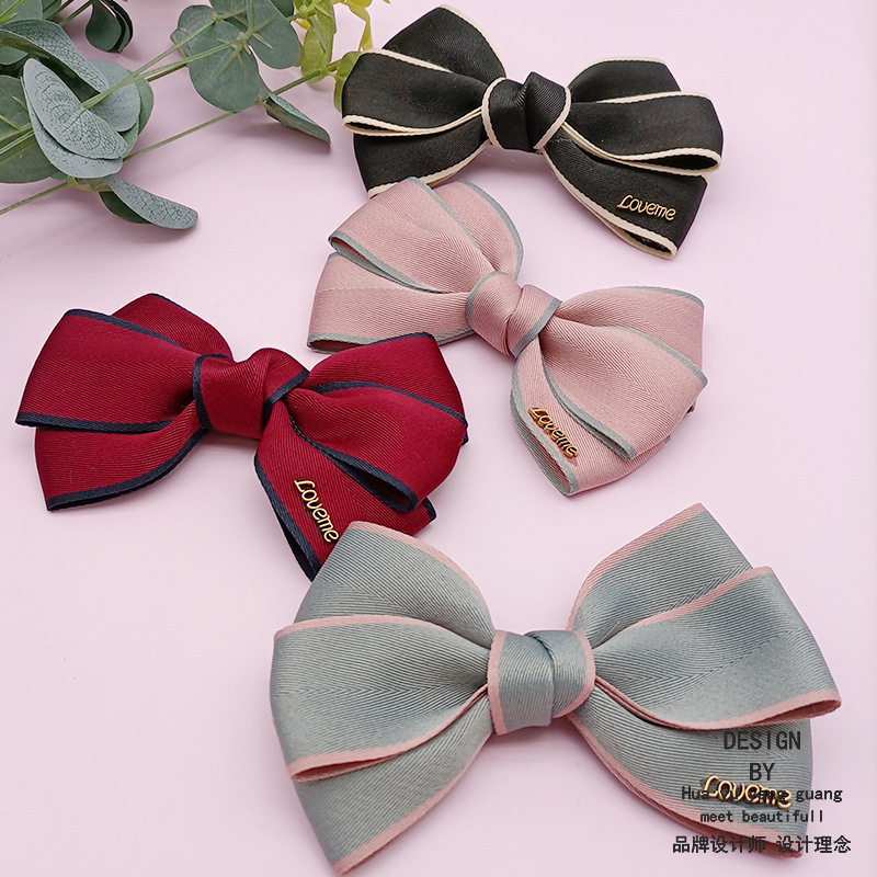 清新な蝶結びのヘアピンの韓国版の格子縞の頭の花は頭のクリップを刺します。