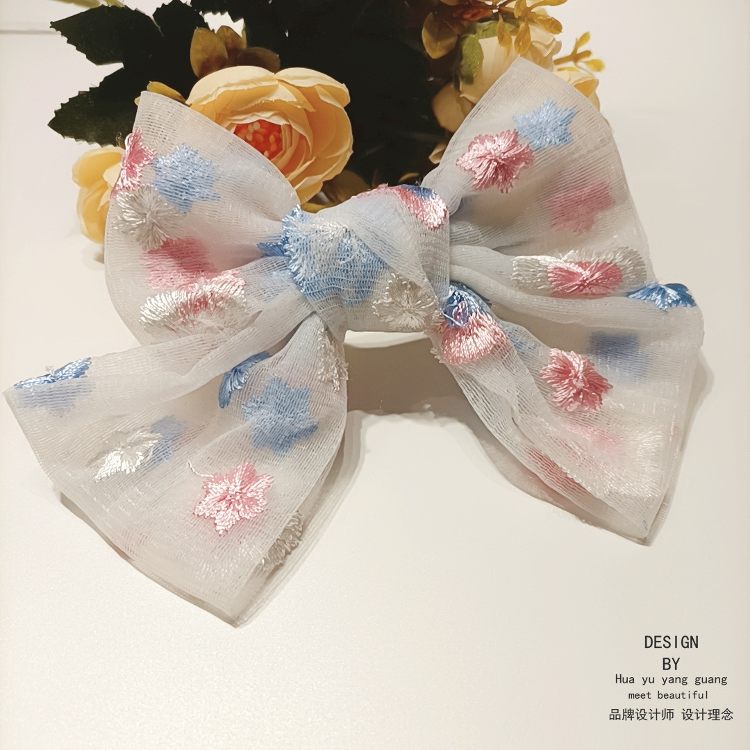 Ins刺繍蝶結び春夏ヘアクリップ子供少女レースヘアカーソン系かわいい甘い髪飾りカモ口クリップ