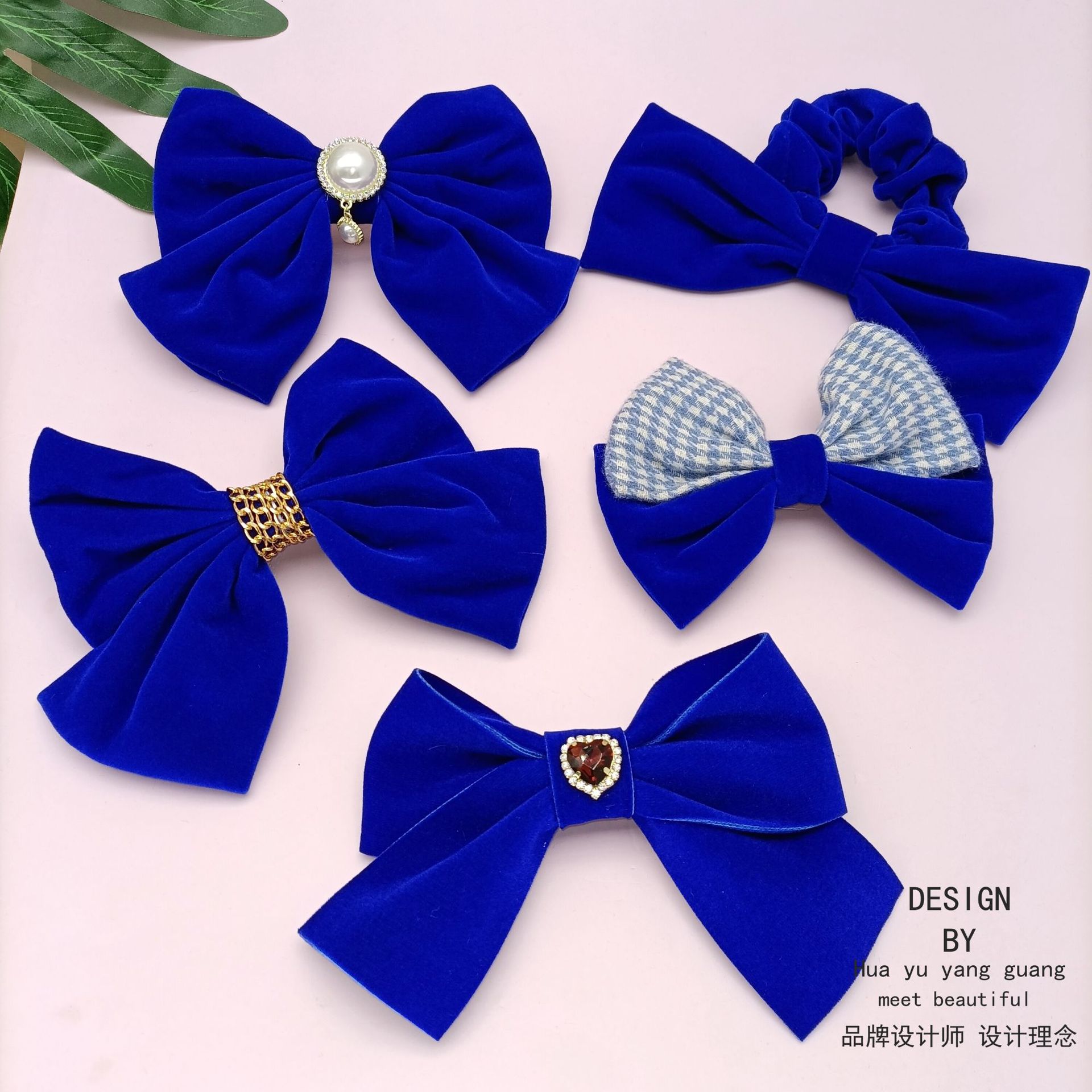 クラインブルーの蝶結びのヘアピンのベルベットの大きいサイズのカモの口は青い髪の輪の秋冬の高級感のあるヘアピンのアクセサリーを挟みます。