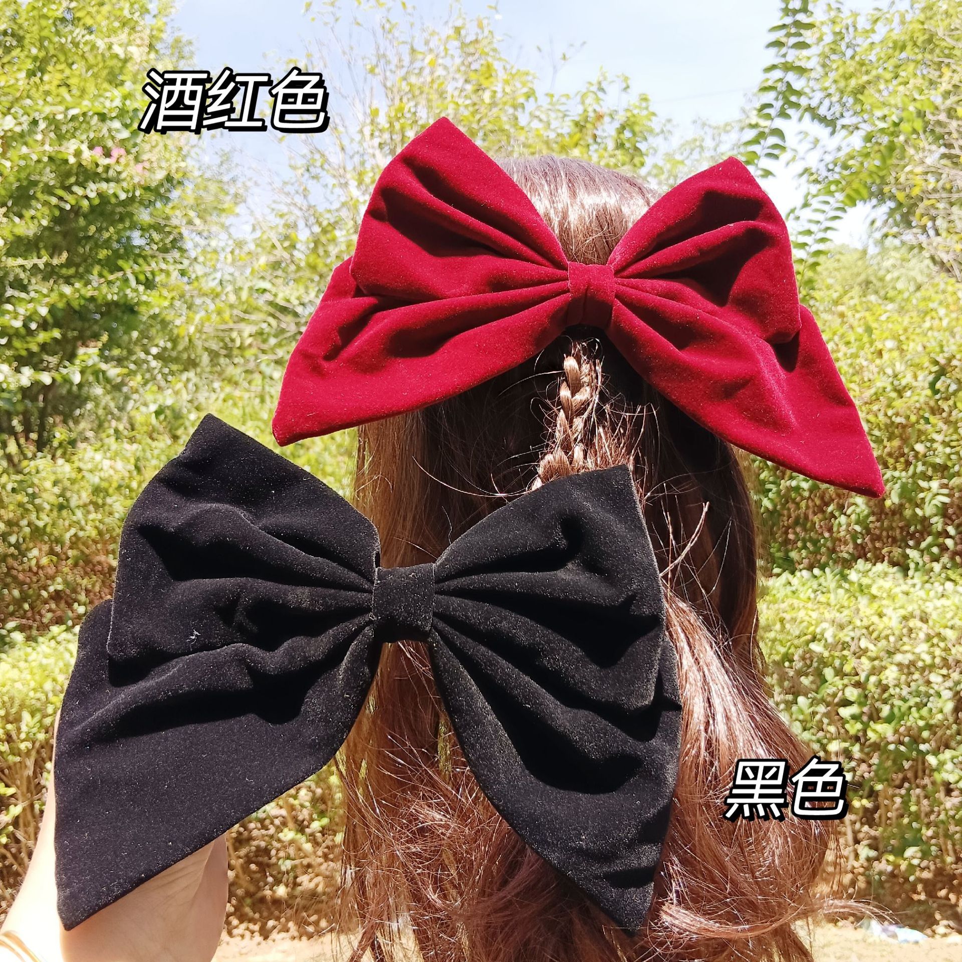 韓国のかわいいワインレッドの大きな蝶結びのヘアピンの女の子の秋冬の後頭部のヘアピンの王女の髪飾りの卸売りの髪飾り