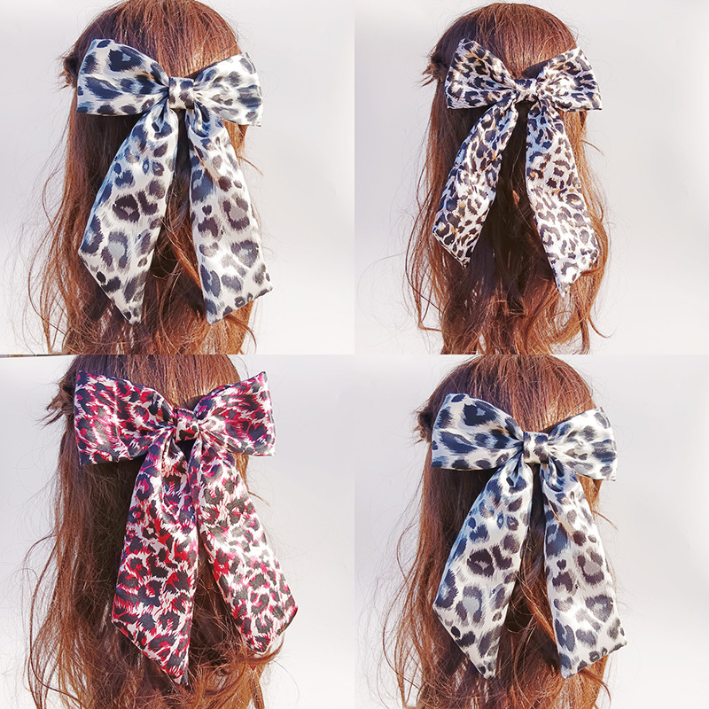 外国貿易クロスボーダーヒョウ柄リボンヘアピン、レトロなハーフタイヘアスプリングクリップ、ニッチな高級ヘアアクセサリー、ヘッドドレス