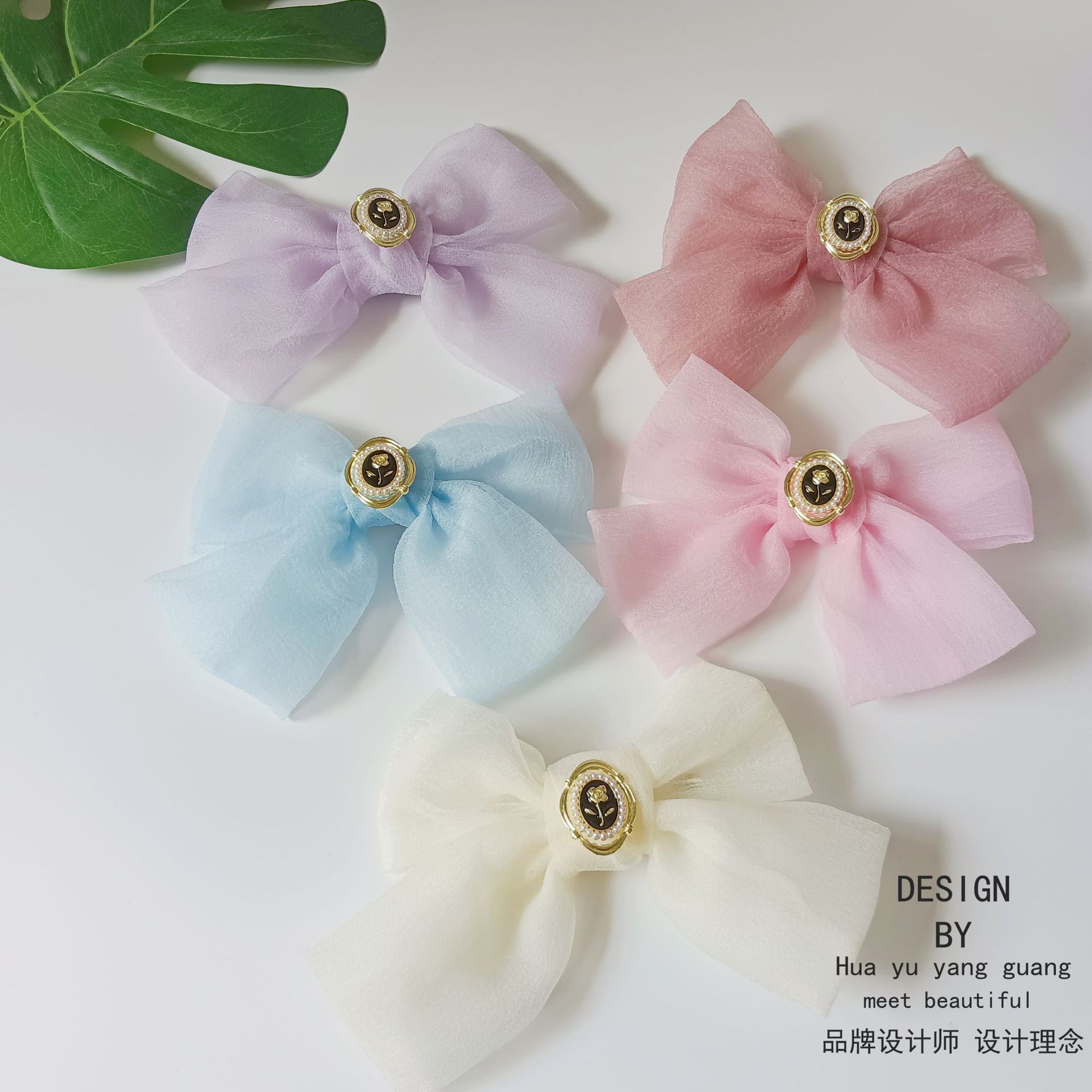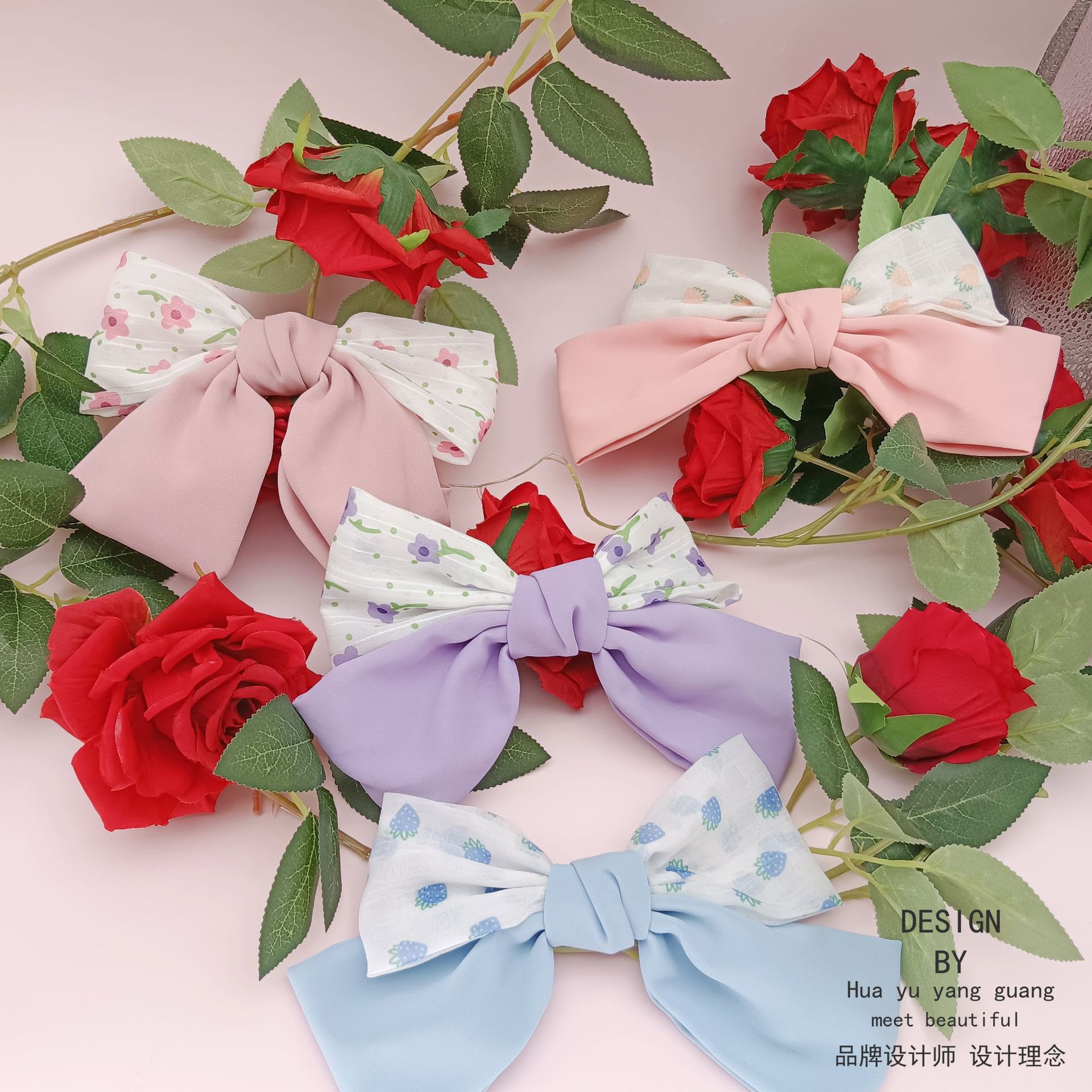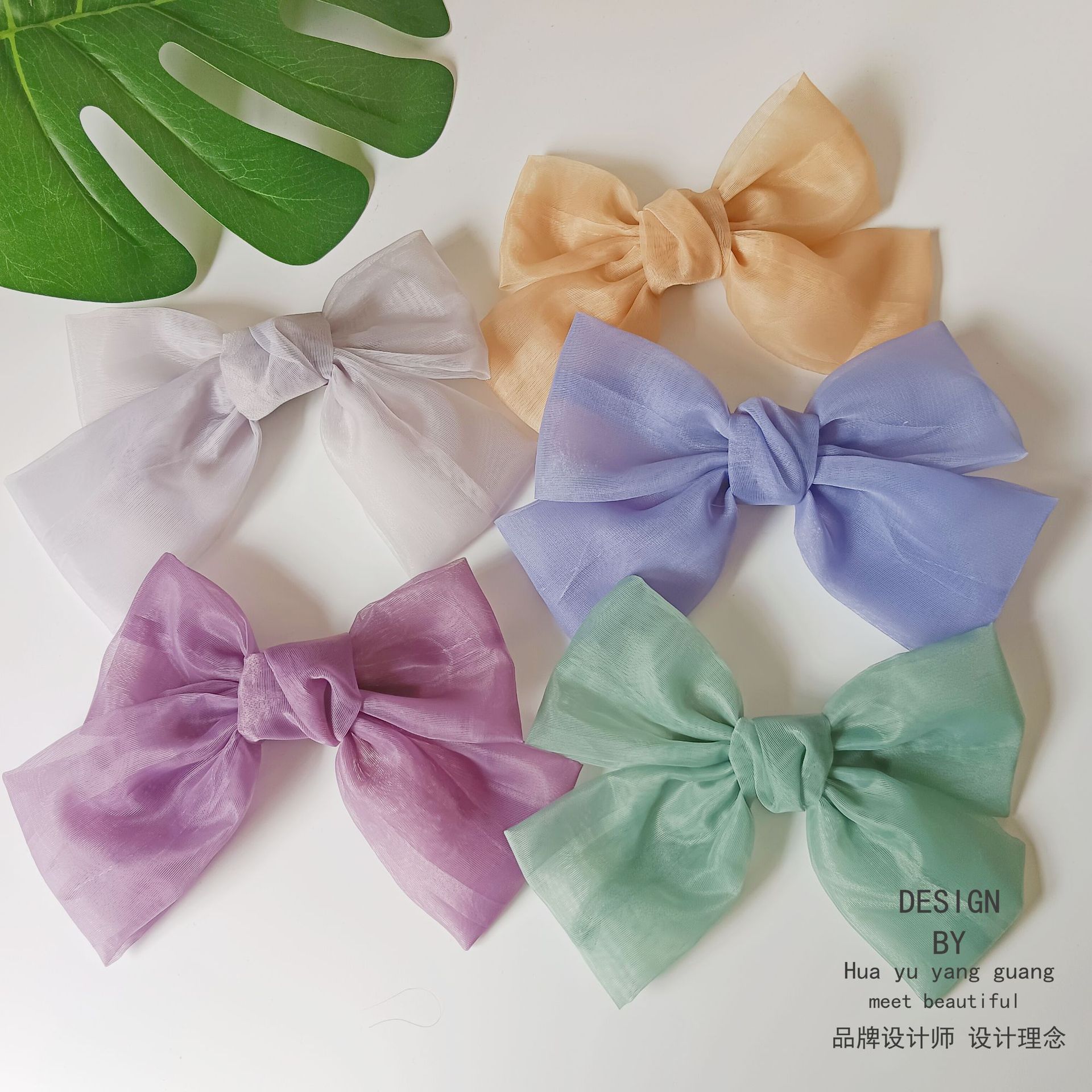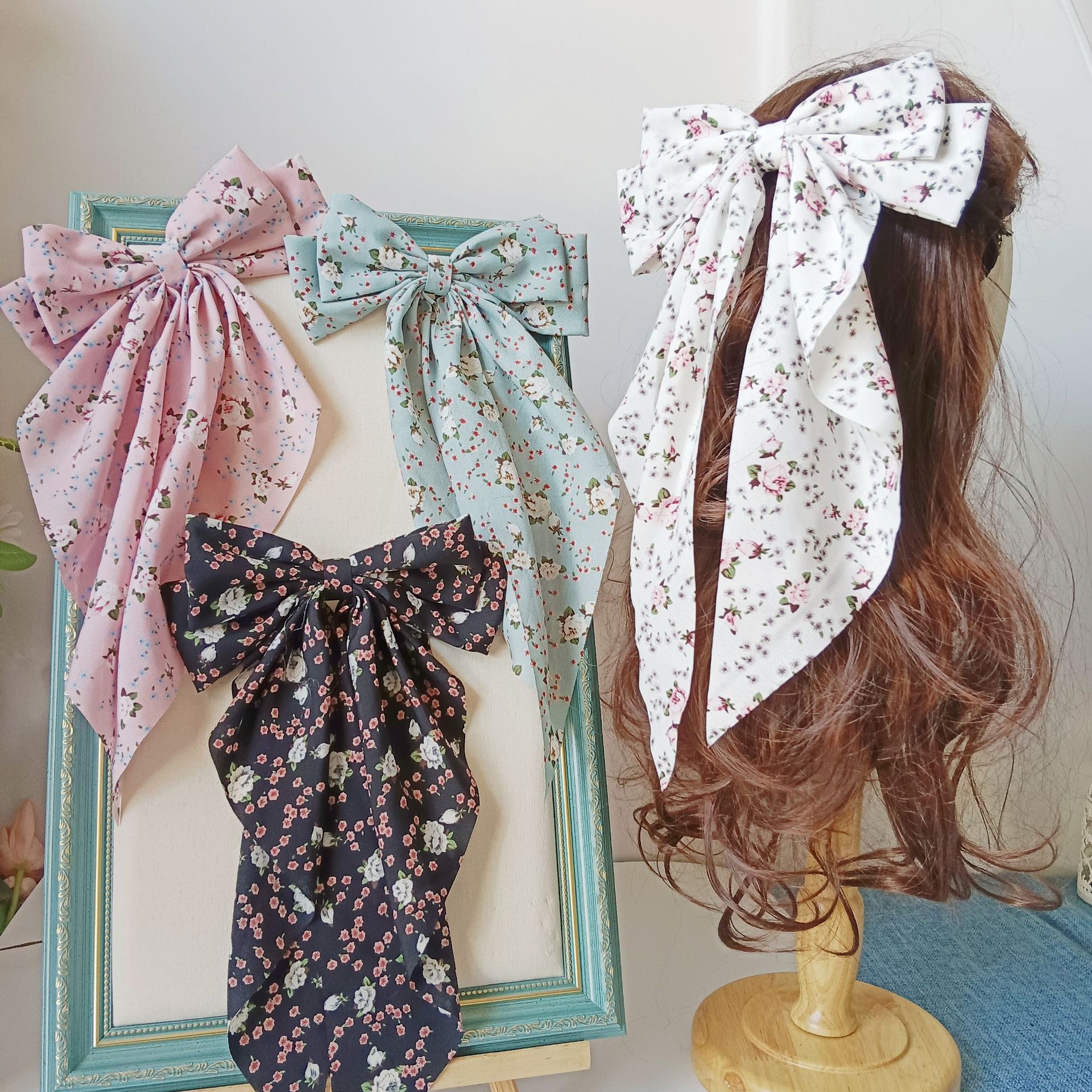 対外貿易風砕花大襟巾リボン付きバネクリップ夏型小清新森系ビーチ風髪飾りヘアクリップ