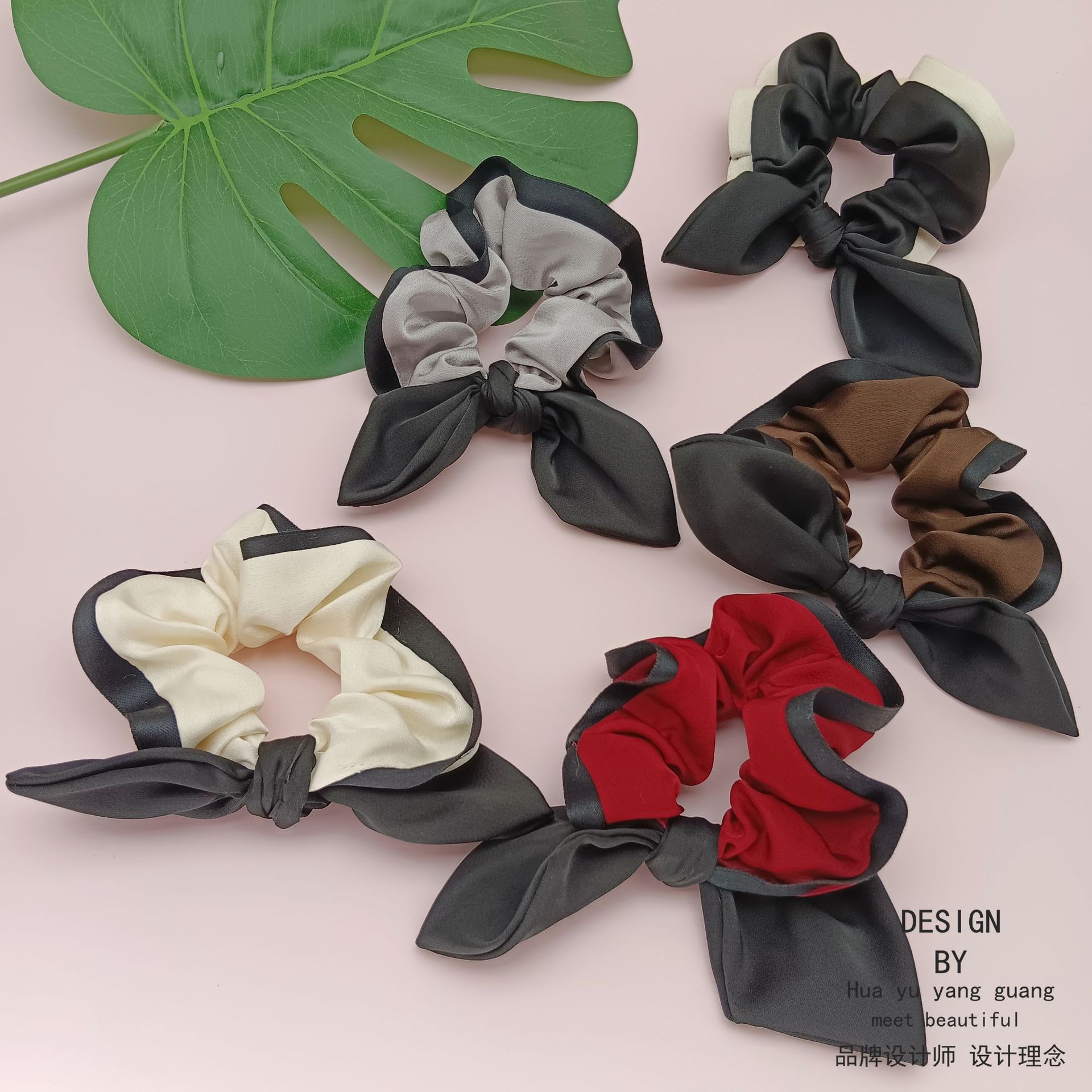 東大門フランスの新しい優雅な気質は色のサテンの蝶結びの大腸の髪の輪を合わせます。