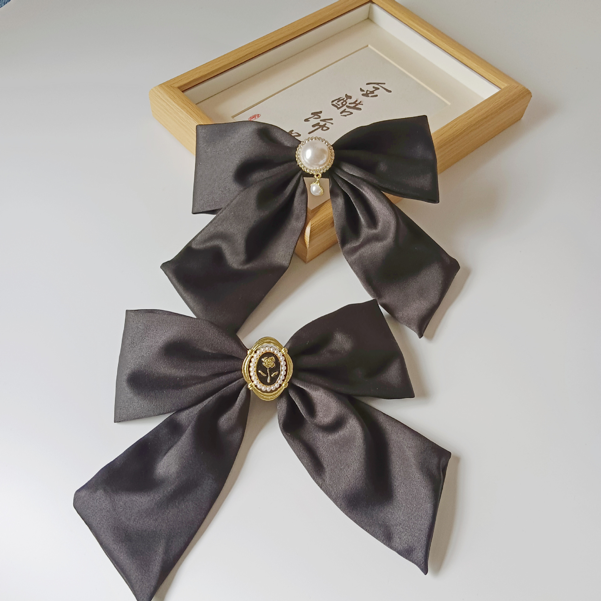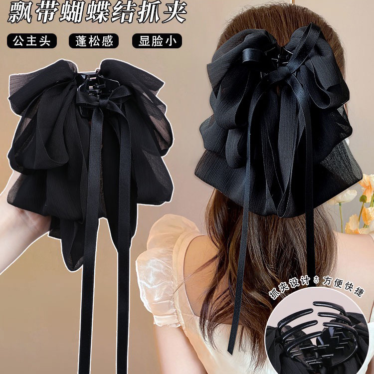 蝶結びの頭飾りの黒い大きなヘアピンの後頭部の韓国版の新型の高級感のフランス式の女性の髪飾りのスプリングクリップ