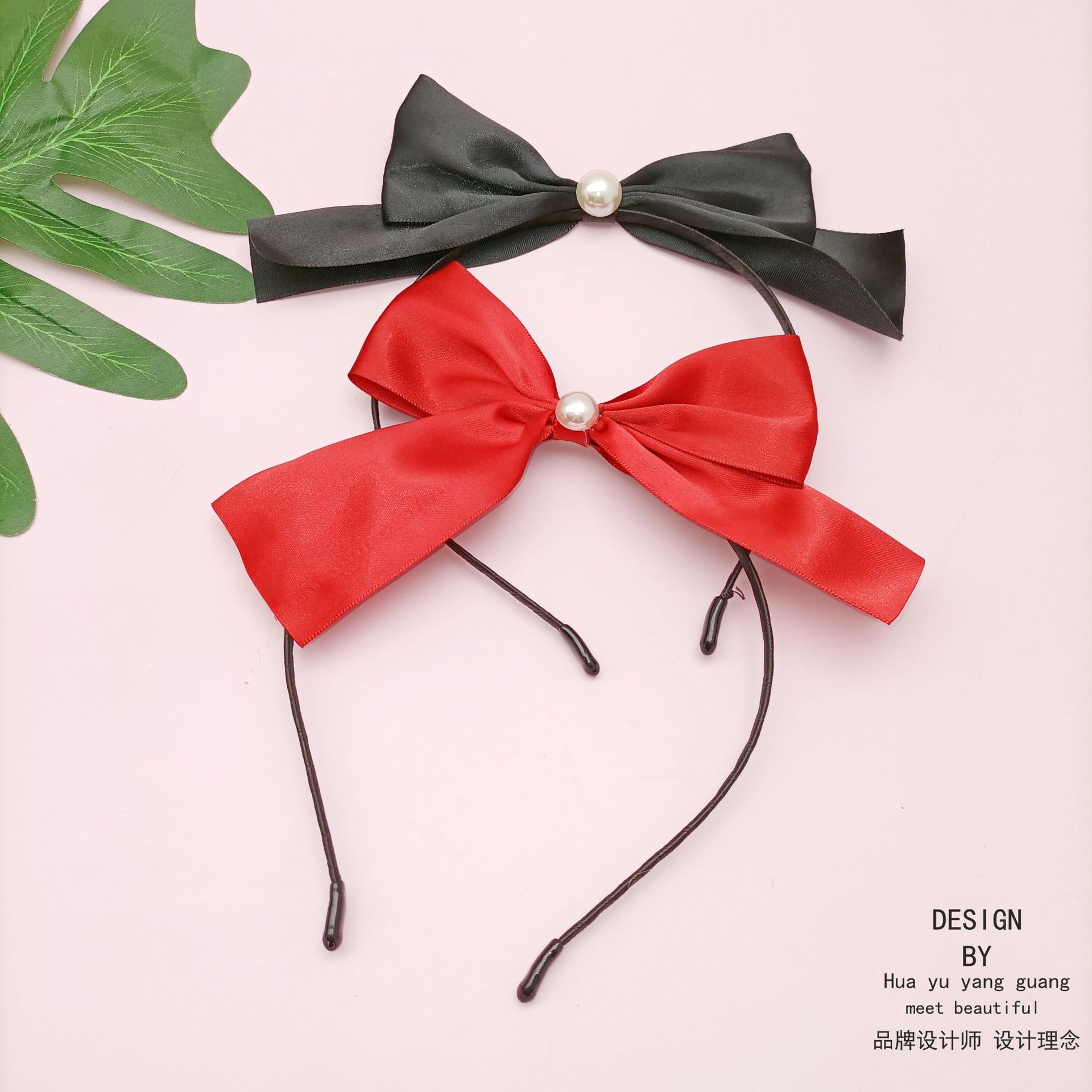 ワインレッドの蝶結びのカチューシャは顔を洗って滑り止めで女性の夏の髪を遮ることができません。