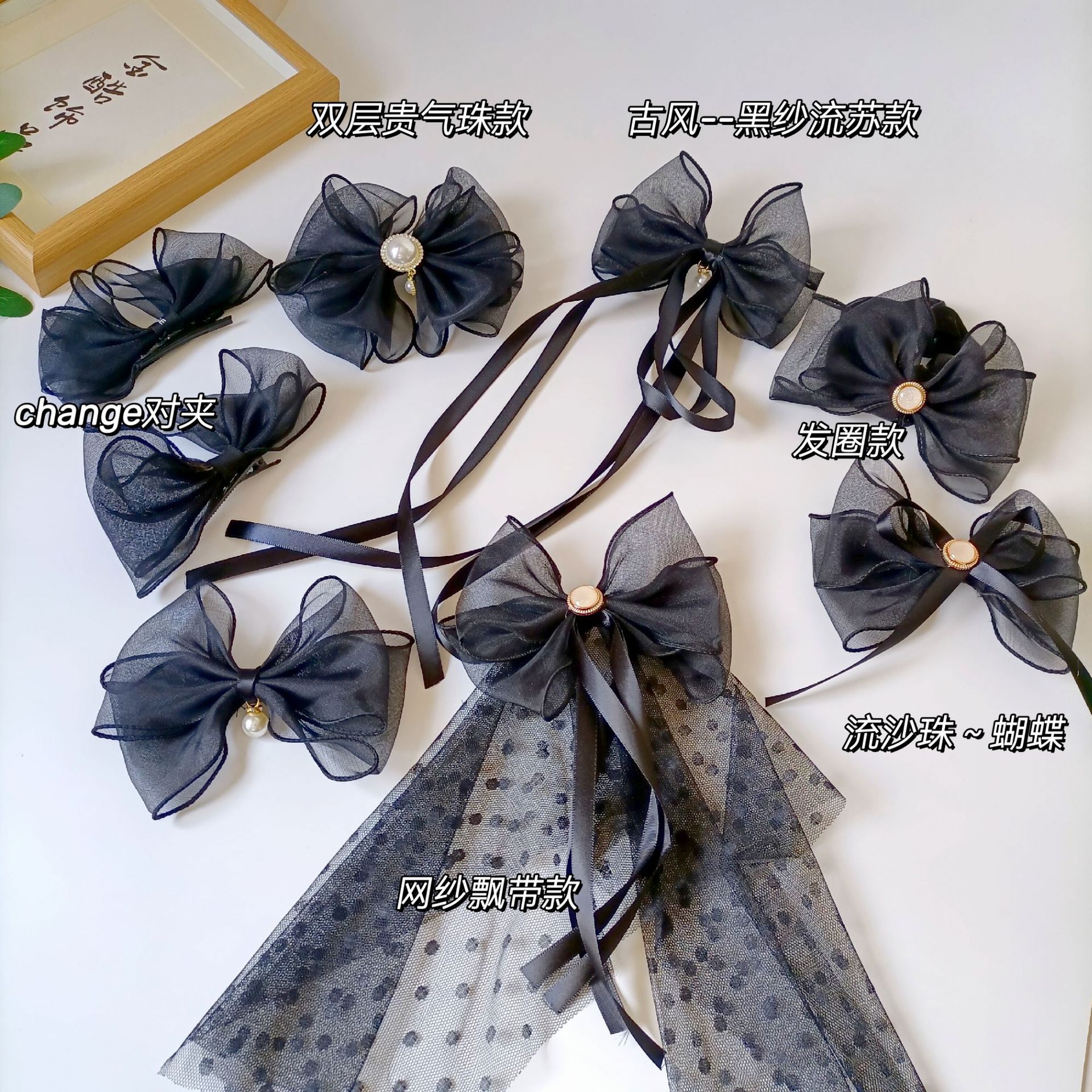 小紅の本の同モデルの超仙日系の黒い蝶結びは優雅な髪を挟んでロリータのアンドロメダのアクセサリーを飾ります。