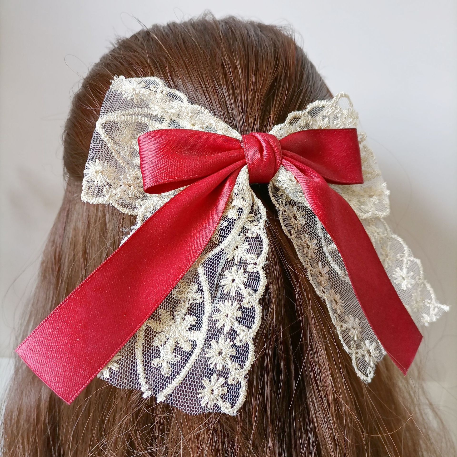 花レース刺繍蝶結びヘアクリップ森系自然風春夏後頭部超仙写真高馬尾髪飾り