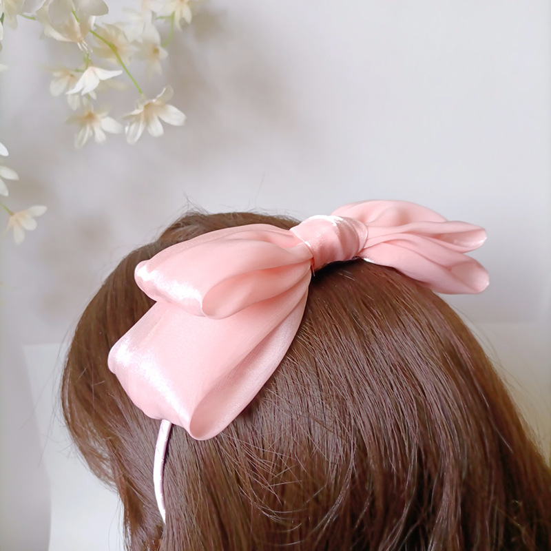 人魚姫蝶結びのカチューシャがシンプルで外出しています。
