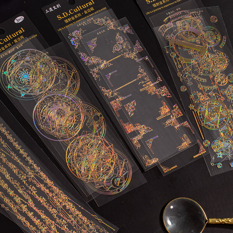 流麻手帳テープ花浮き彫り箔押し防水シールpetタイル装飾素材手帳シールレーザー