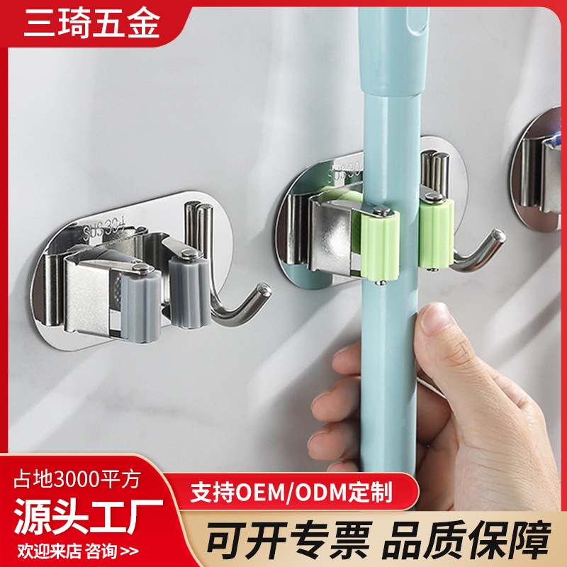 カスタマイズされたパンチフリー 304 ステンレス鋼モップクリップフック壁掛けキッチンバスルームハンギングほうきモップラック