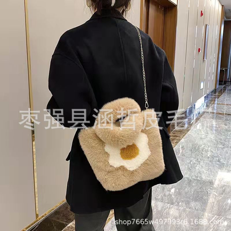 毛羽立ちのカバンの女性2020新商品のガチョウのカバンのファッション的なぬいぐるみの斜め掛けのカバンの肩はラッコの毛の漫画のカバンのようです。