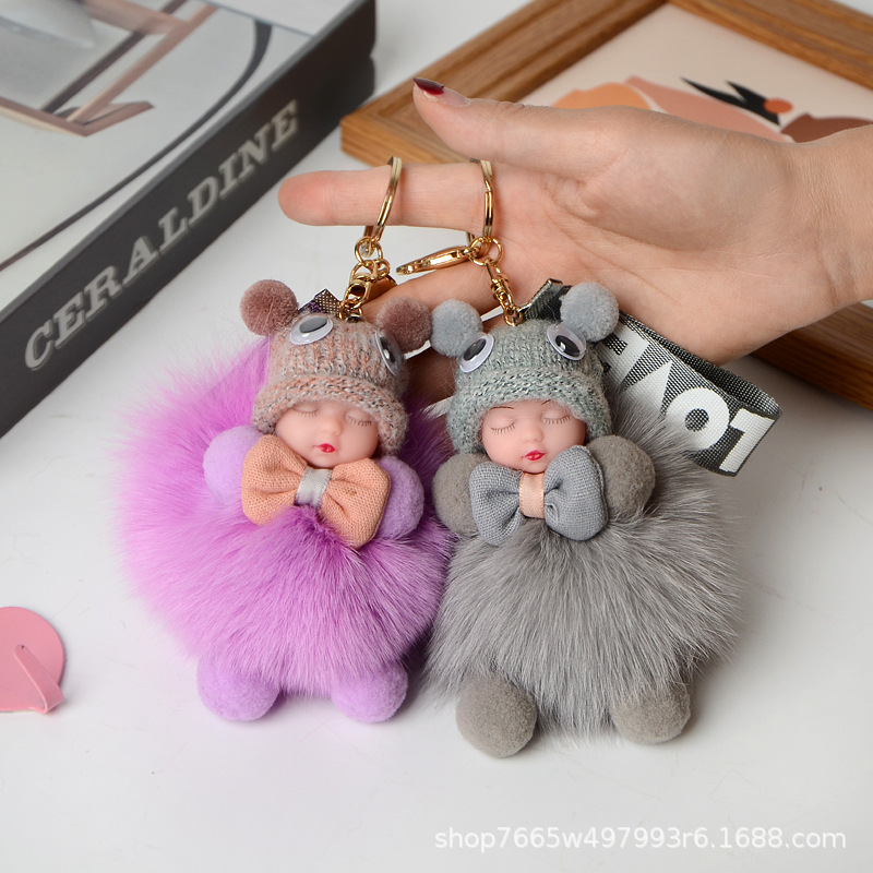 本物の毛狐の毛玉の掛け物の包みの公仔は車のキーホルダーの掛け物を掛けて睡眠の人形のぬいぐるみを飾ります。