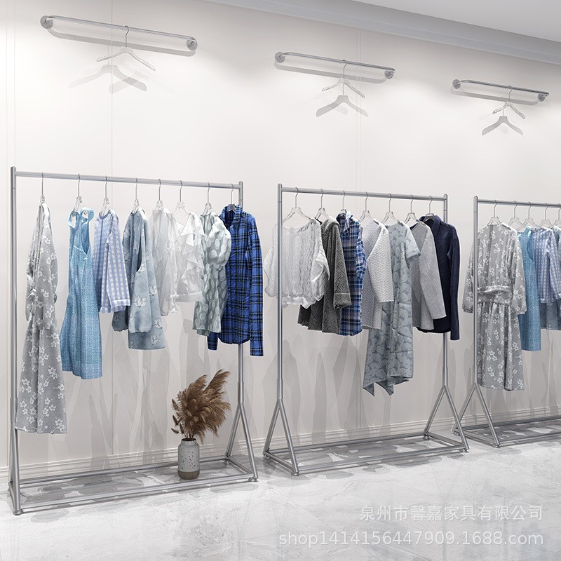 ハンガー床置き卸売服店展示棚ステンレス移動式婦人服店ハンガー