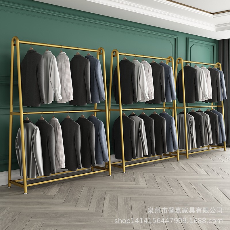 メーカー直販卸売り北欧金色鉄芸服装棚掛け服棚着地組合せ服装店展示棚