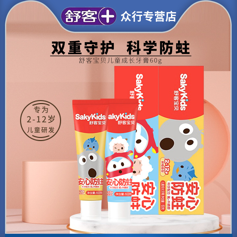 舒客児童歯磨き粉60gフッ素含有虫歯防止2-12歳成長白歯純正品卸売り舒克歯磨き粉