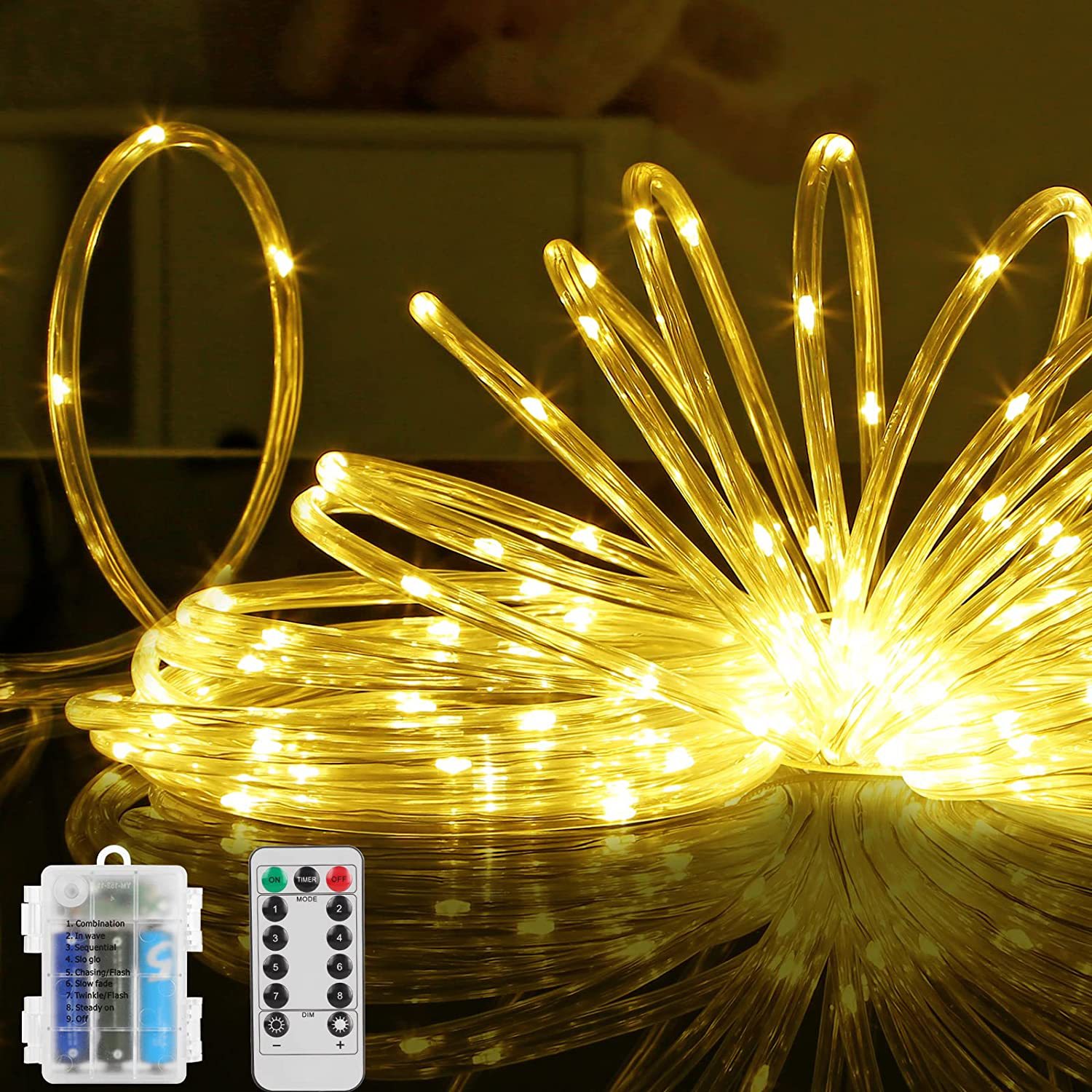 Amazonで人気の100LED銅線ライトストリング、屋外防水バッテリーボックス付きリモコン式PVCレインボーチューブ